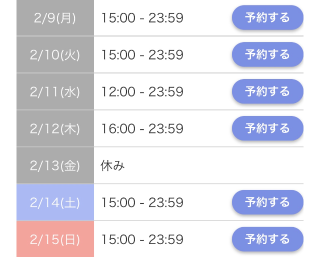 🗓 2月9日から15日までのシフト