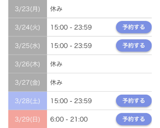 🗓 3月23日から29日までのシフト