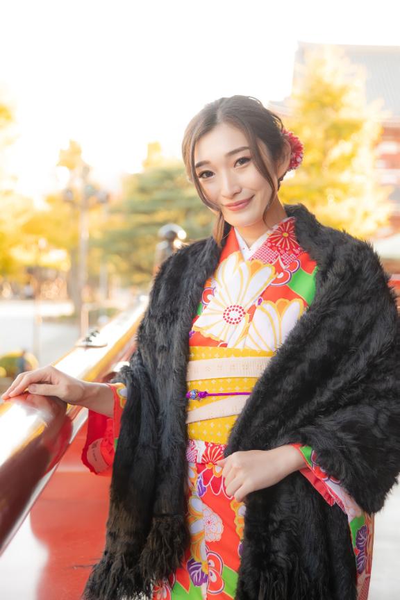 参道以外真ん中を歩く女