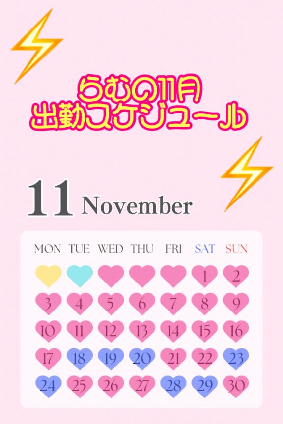 らむの11月の出勤スケジュールまとめました🥰画像の青いハートが出勤日です👀✨